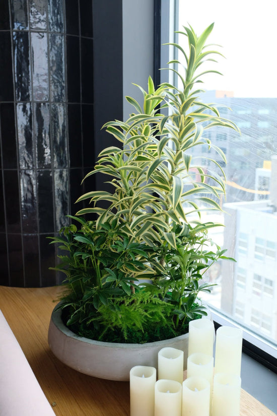 We approach interiors as a way to showcase the unique, interesting and exquisite beauty of nature; allowing the plants natural wonder to speak for themselves. We handpick each and every plant, embracing the natural growth habits and take the time to pair it with the most complimentary vessel and materials we can find. By doing this process with intention and appreciation for natural beauty, our plants become more than just decor, they're living, breathing art.